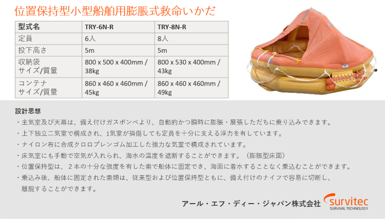 アール・エフ・ディー・ジャパン株式会社新ルール適用の位置保持型(改良型)小型船舶用膨脹式救命いかだ