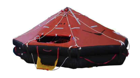 アール・エフ・ディー・ジャパン株式会社本船備え付けのダビッド進水装置を使用して、船上の舷外に吊り下げ、膨脹後に本船乗り込み場所から乗込み、海上に降下脱出する救命いかだです。